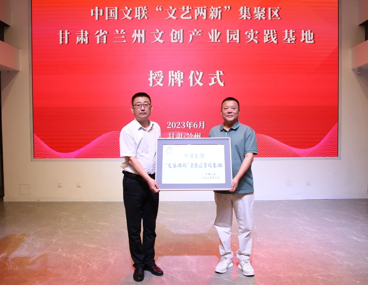 6月26日上午,中国文联“文艺两新”集聚区兰州文创产业园实践基地揭牌仪式暨甘肃省文联“文艺两新”及业务主管社会组织专题宣讲活动在兰州文创产业园文化艺术交流中心举行。甘肃省文联党组书记、主席王登渤出席仪式并授牌。