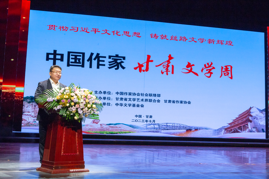 李晓东在致辞中表示,甘肃拥有浓郁文学氛围和深厚读者基础,近年来,文学陇军成果丰硕,甘肃的广大文学工作者开拓进取,践行着从“高原”向“高峰”的攀登,持续构筑丝绸之路上新的文学风景。“甘肃文学周”活动以“贯彻习近平文化思想,铸就丝路文学新辉煌”为主题,将在兰州、天水、临夏三地同时开展,邀请全国著名作家为基层作者和各年龄段各领域读者进行创作辅导和授课;联合中华文学基金会向临夏、天水两地中小学校捐赠价值270万元的书籍,以更丰富、更多元、更精准的文学服务点亮生活,致敬时代。各级作协要以高度的政治责任感和使命感,聚焦“七个着力”,把学习宣传贯彻习近平文化思想落实到工作的全过程和各方面,进一步开阔文学胸襟,提升文学境界,牢记“国之大者”,开展更多接地气、有生气的公共文学服务和文学志愿服务,提升活动针对性和时效性、传播力和影响力,积极推动新时代文学融入现代传播格局,使优秀文学作品有效抵达受众,深入人民精神世界,增强人民精神力量,推动新时代文学高质量发展。