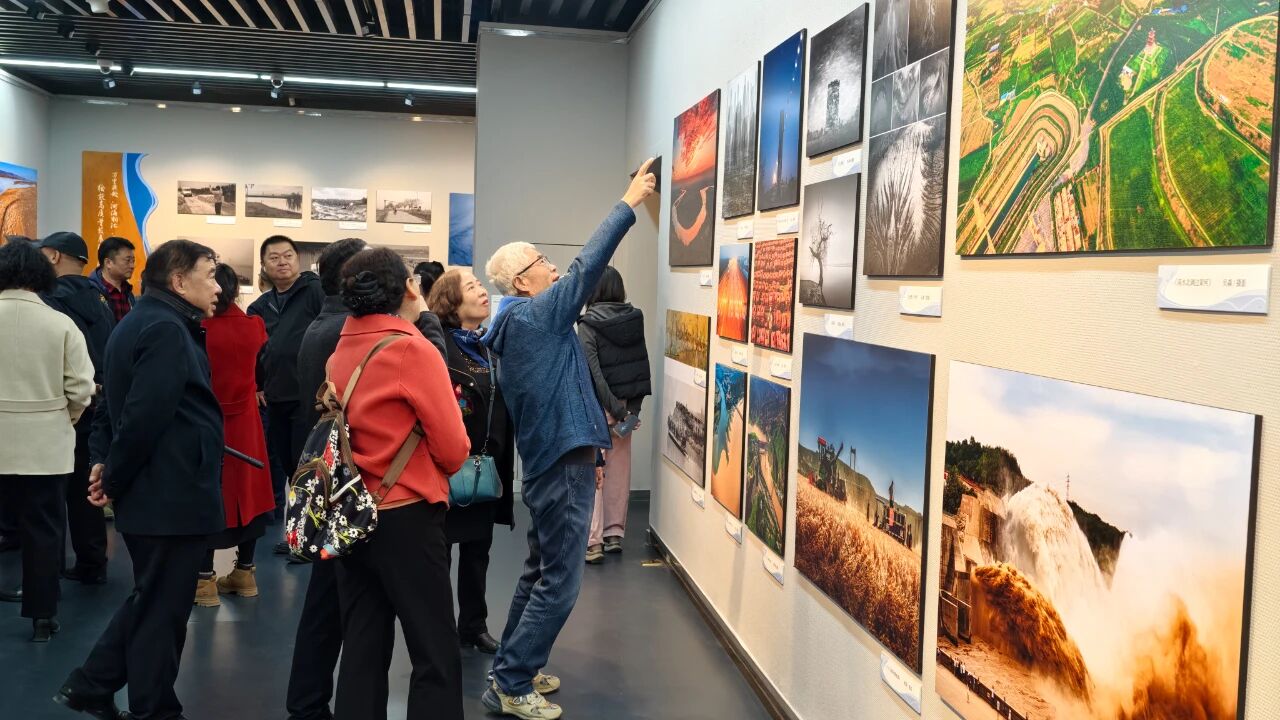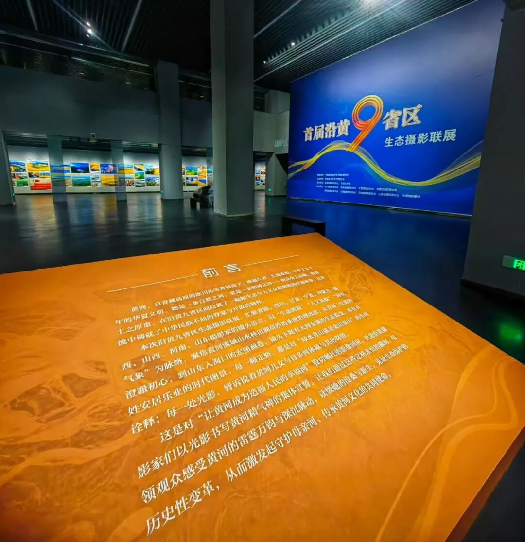 展览现场,来自沿黄九省区的270幅摄影作品,分为 “青海:源头活水,中华水塔,以冰川之洁孕育文明初心”“四川:九曲回肠第一湾,在若尔盖草原挥洒诗意飘逸的哈达”“甘肃:两进两出,奔涌913公里,在陇原大地泼墨挥洒绚丽画卷”“宁夏:天下黄河富宁夏,于塞上江南织就引黄灌溉的富饶传奇”“内蒙古:挥毫写就几字弯,在河套平原谱就农耕与游牧的交响乐章”“山西:吕梁太行风骨,以壶口瀑布的雷鸣响彻中华民族不屈历程”“陕西:怒吼三秦峡谷,以黄土高原的沧桑与新生激荡时代回响”“河南:中原腹地,华夏摇篮,以中流砥柱的坚守护佑黄河安澜”“山东:万里奔赴,河海相汇,于齐鲁大地绘就高质量发展的宏图画卷” 九个主题篇章依黄河流经区域依次呈现。