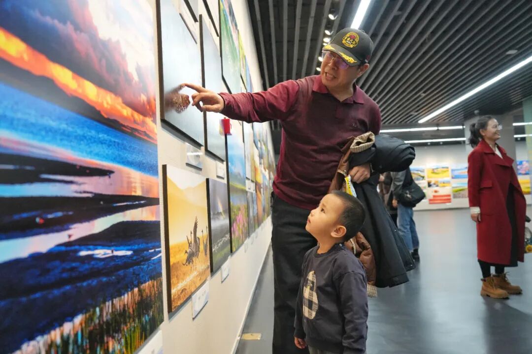 展览以“生态新篇”“人文风貌”“时代气象”为叙事脉络,系统呈现黄河流域山水林田湖草沙一体化治理的卓越成效。从青海三江源的澄澈初心,到山东入海口的壮阔图景,镜头不仅记录了大河安澜的生态蜕变,也捕捉了沿岸百姓安居乐业的生动瞬间。每一幅作品都是“绿水青山就是金山银山”理念的生动诠释,每一处光影都在讲述着黄河儿女与母亲河血脉相连、共生共荣的深厚情感。