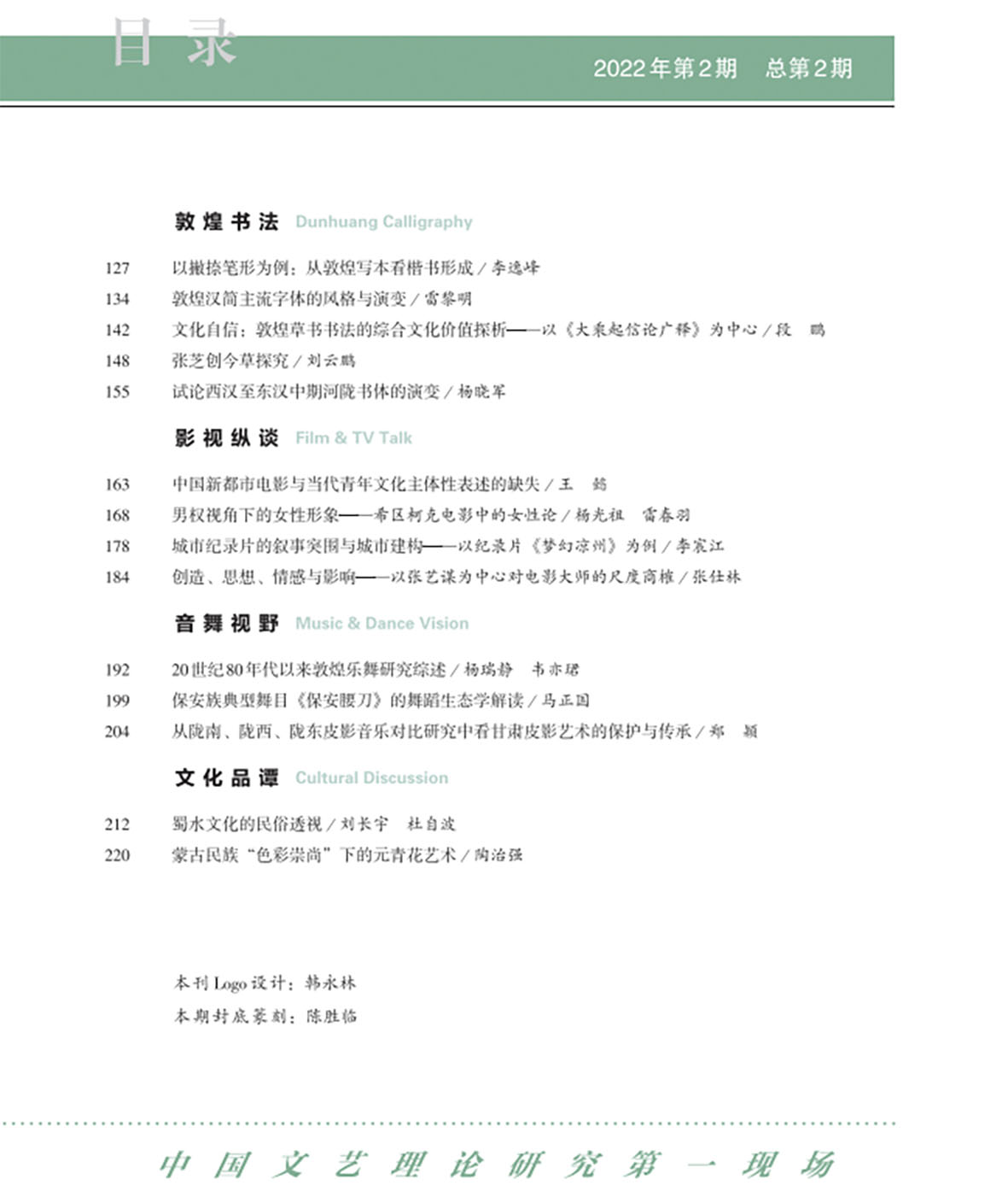 《西部文艺研究》2022年第2期目录