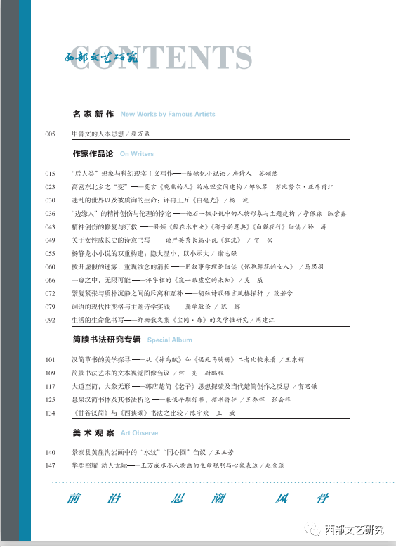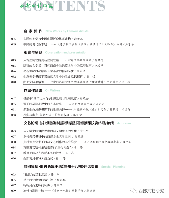 【西部文艺研究前沿/主持人:李震】Research Frontier of Literature and Art in Western China