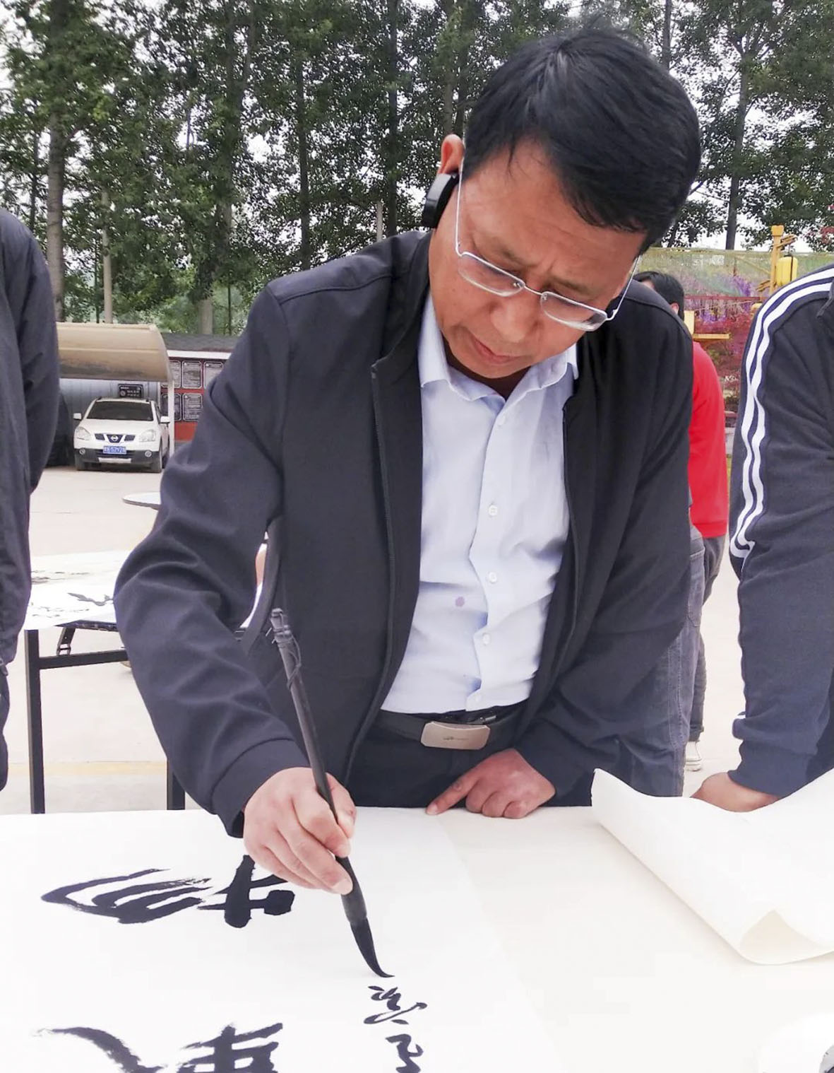在干好本职工作之外,王亚斌还兼任着甘肃省书协的理事、副秘书长、平凉市书协的副秘书长等社会职务,每年都会参加各级书协组织的文化下乡、扶贫送书画等活动,义务为群众写春联、给环卫工人赠送书法作品等,每次不吝挥毫,赠送作品都在数十幅以上。为了带动地方书画的繁荣和发展,他策划组织过各类书画展览:在县志办工作时曾举办喜迎十八大庄浪县十八人书画展;在县文联任职时多次举办专题书画展,并曾与兰州石化公司联合办展;在县科协时举办全县科普楹联书法作品展,等等。每次展览,他都会邀请省内外书法名家作品展出,开阔县人视野,并想方设法筹措资金出版作品集。他平时注重团结带动身边的书法爱好者深入临习经典法帖,帮助他们提升技艺水平,激发创作热情,鼓励参与中书协和省书协举办的权威展览……广泛参加社会活动,正体现了一个文化人的身份自觉,既能更好的服务社会,也弘扬了传统书法文化,生动诠释了一个书法家应有的社会责任。