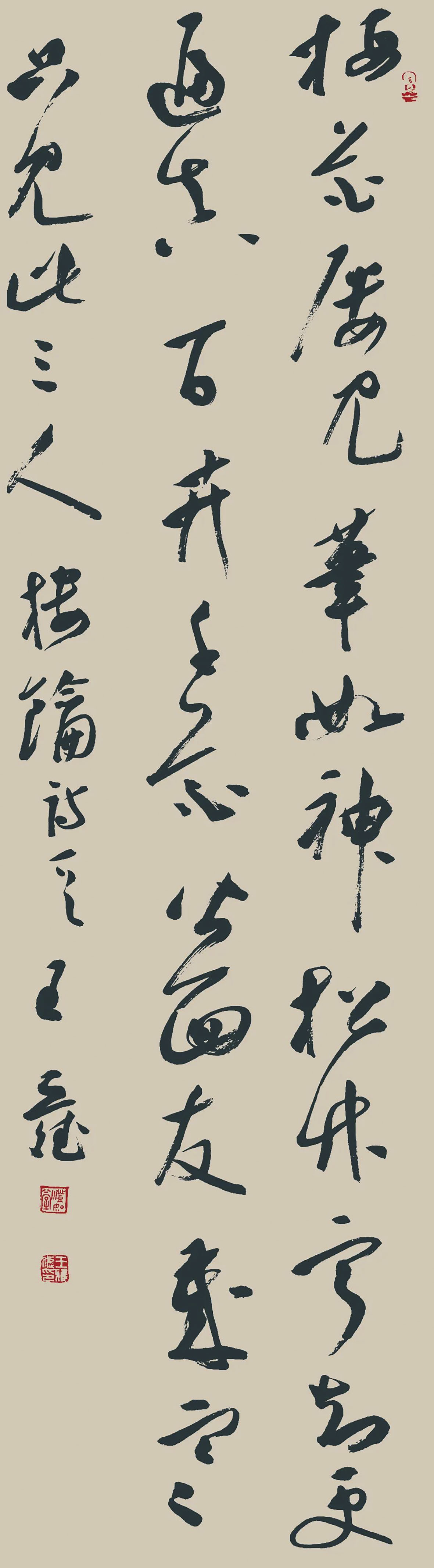 刘熙载在《艺概》中写到:“书者如也,如其学,如其才,如其志,总之曰,如其人而已。”王亚斌的书法创作,基本上是和他这个立体的人相符合的。其为人洒脱而不失儒雅,睿智而又充满活力,他的书法创作也一直在二王帖学系统中流连忘返,作品风格遒逸自然,俊达可人,颇见其天分与性情。