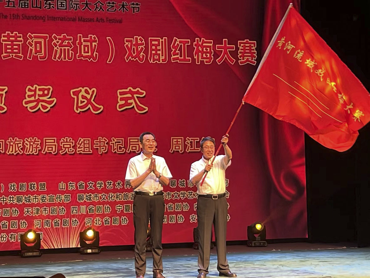 颁奖晚会上举行了会旗交接仪式,第六届中国(黄河流域)戏剧红梅大赛将于2023年在内蒙古举办。