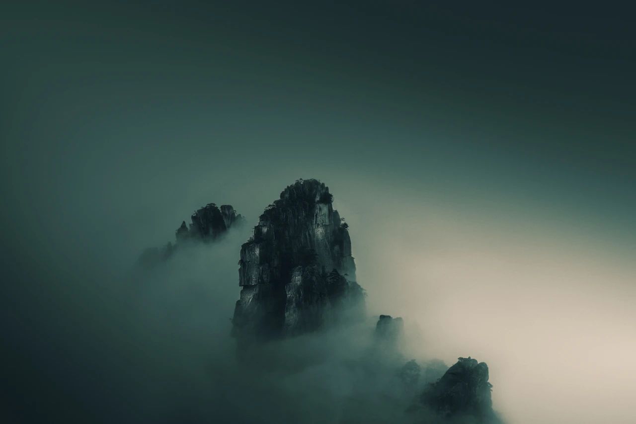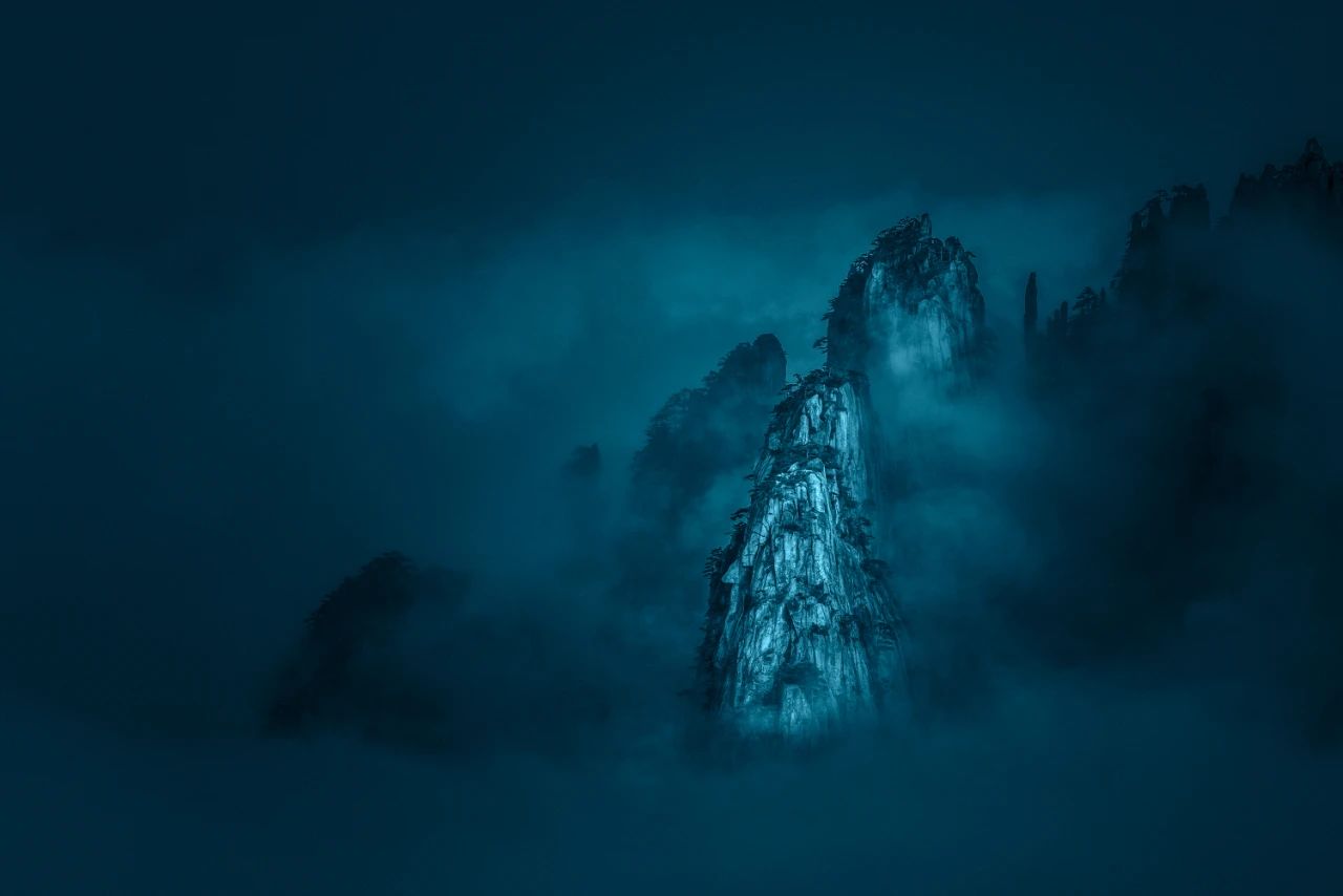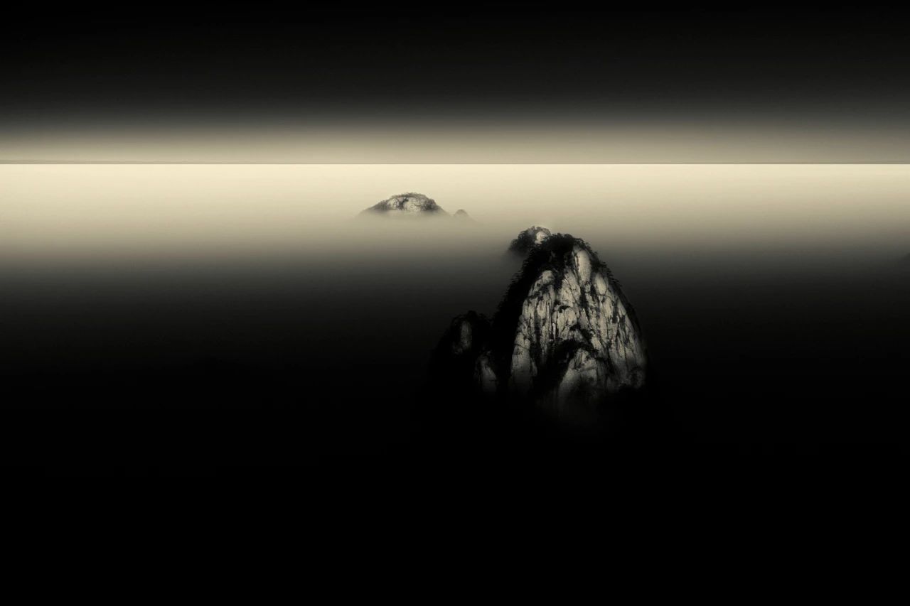 这是一组在安徽黄山拍摄的山水作品,原片画面基本上处于黑白的状态。后期创作的时候进行高品质黑白影像制作,然后再通过技术手段给作品上中国传统色。