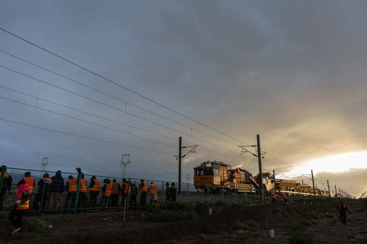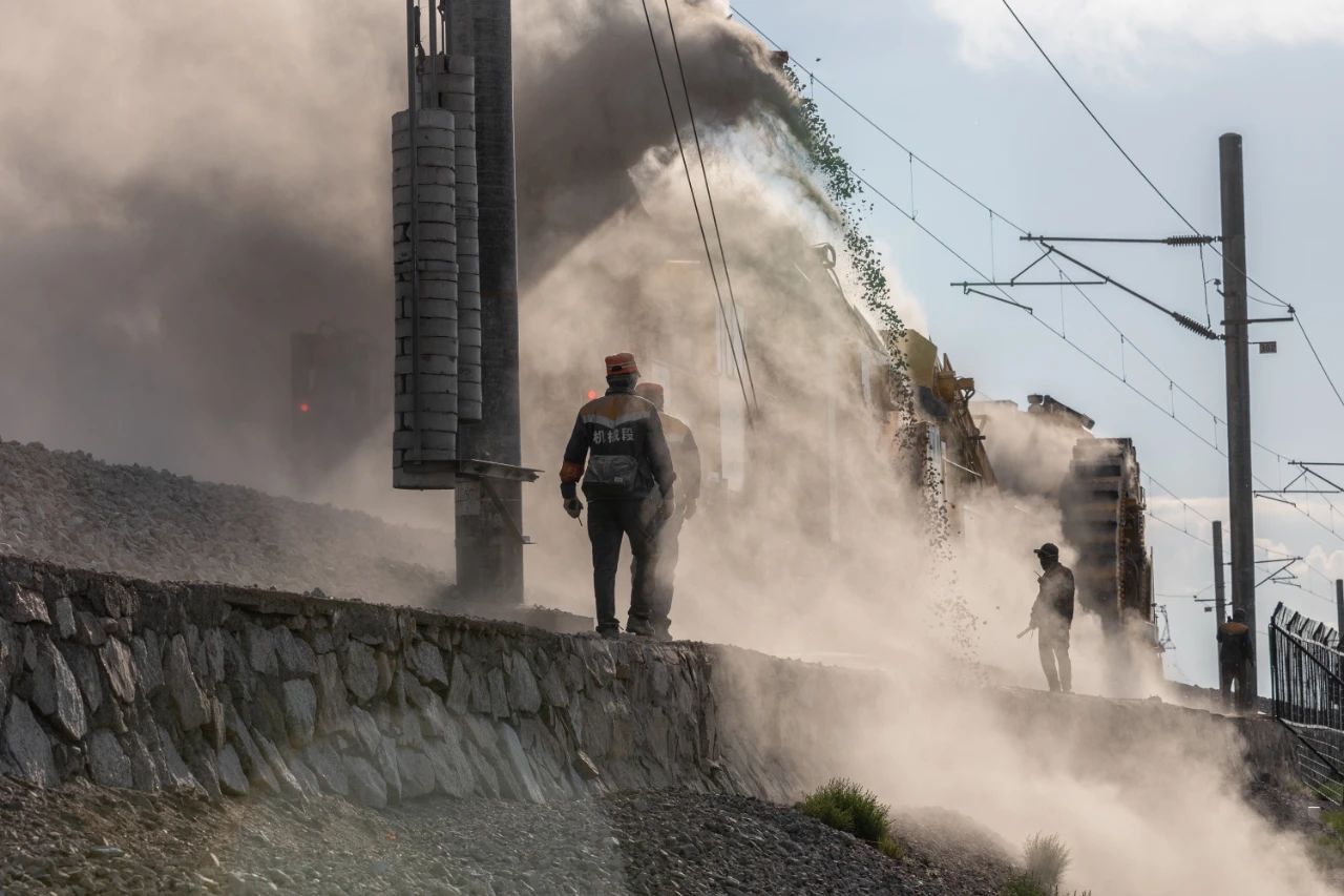 铁路大型养路机械施工时人机结合的宏大场面,常被比喻为“铁甲军团”。